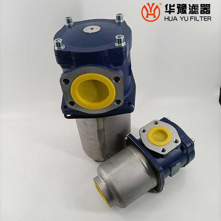 該過濾器的濾芯采用化纖過濾材質(zhì),具有過濾精度高,通油能力大,初始壓力損失小,納污量大等優(yōu)點(diǎn),并裝有壓差發(fā)訊器及旁通閥。當(dāng)濾芯堵塞到進(jìn)出油口壓差為0.35MPa時(shí),便發(fā)出開關(guān)信號,此時(shí)應(yīng)更換濾芯。如果不能馬上停機(jī)或無人來更換濾芯,裝在濾芯上部的旁通閥會自動開啟,以保護(hù)系統(tǒng)。