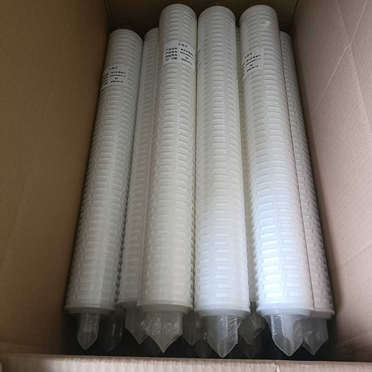 該種PP折疊濾芯為雙層聚丙烯材打折結(jié)構(gòu)、其內(nèi)層為(PP,PTFE,PES三種中一個),為終過濾層,外層采用孔徑就達(dá)的無紡布為粗過濾層,起到了預(yù)過濾作用,內(nèi)外支架為聚丙烯或不銹剛材料;因此該濾芯是預(yù)過濾和終過濾合二為一。濾芯的過濾精度 0.10、0.22、0.45、0.65、0.8、1、3、5八種孔徑,也可以根據(jù)不同要求選擇。